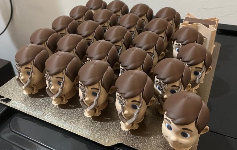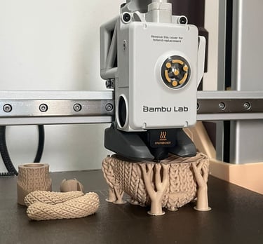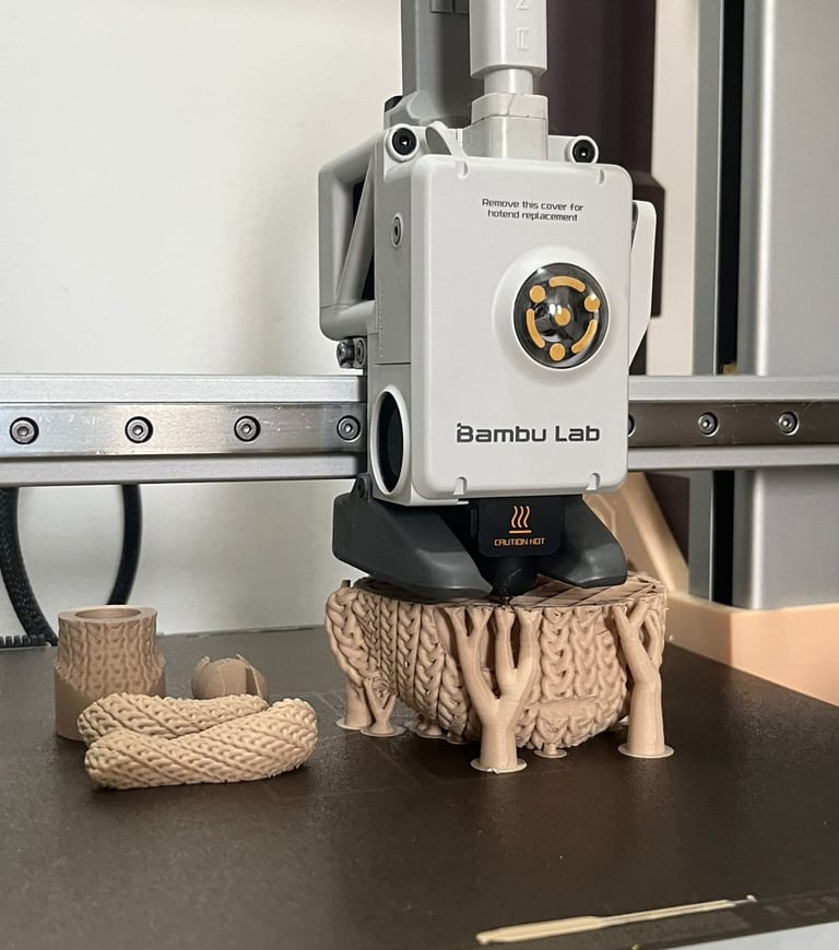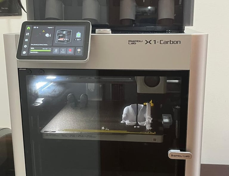Uso de impressoras 3D da Bambu Lab para resultados robustos e detalhados.